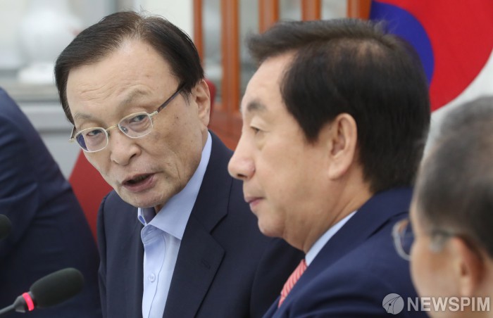 [서울=뉴스핌] 김학선 기자 = 이해찬 더불어민주당 신임 대표가 27일 서울 여의도 국회에서 김성태 자유한국당 원내대표를 예방, 인사말을 하고 있다. 2018.08.27 yooksa@newspim.com