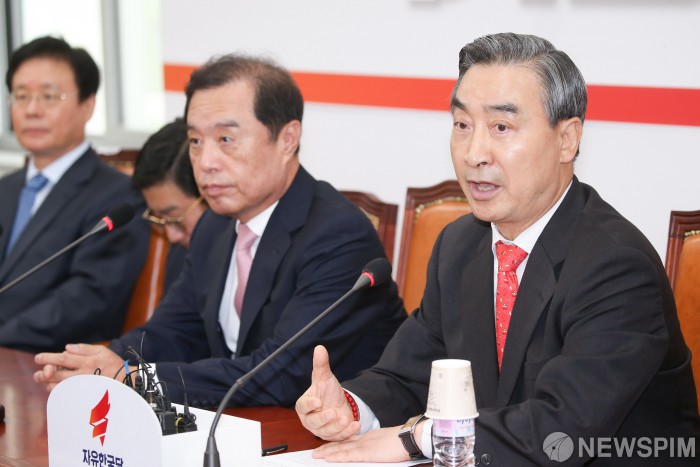 [서울=뉴스핌] 최상수 기자 = 전옥현 자유한국당 국가안보특별위원회 위원장이 6일 오전 서울 여의도 국회에서 열린 국가안보특별위원회 임명장 수여식 및 1차 전체회의에서 인사말을 하고 있다. 2018.09.06 kilroy023@newspim.com