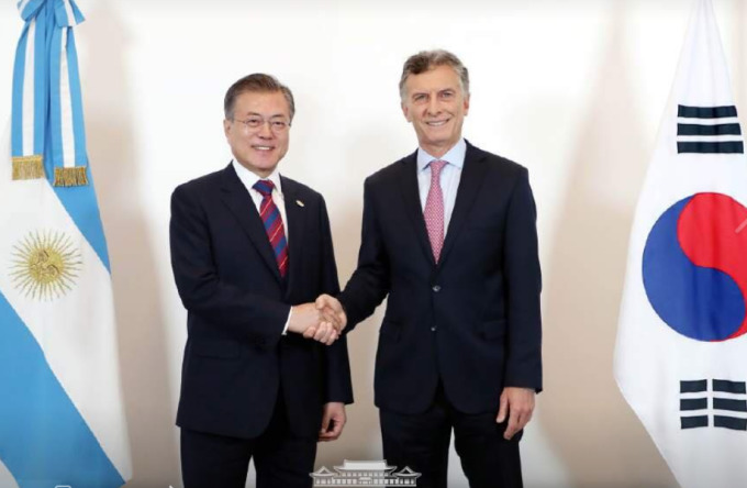 마크리 대통령은 "한반도 평화 정착을 위한 문 대통령과 한국 정부의 노력을 높이 평가한다"면서 "아르헨티나도 북핵 문제의 평화적 해결과 한반도의 항구적 평화를 구축하기 위한 노력을 지속해 나갈 것"이라고 말했다.