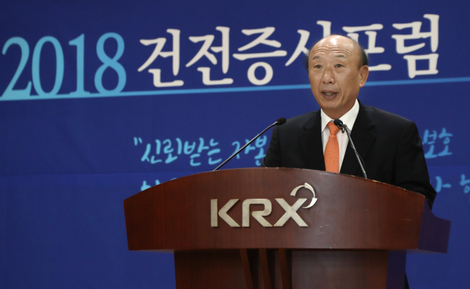 | 이해선 한국거래소 시장감시위원장이 4일 '2018년 건전증시포럼' 개회사를 하고 있다. <사진=한국거래소> |