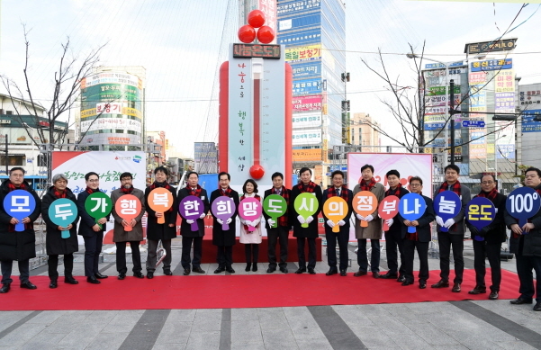 [의정부=뉴스핌] 고성철 기자 = 경기도 의정부시(시장 안병용)는 6일, 의정부역 동부광장에서 지난 11월 20부터 2019년 1월 31일까지 73일간 진행중인 ‘희망 2019 나눔캠페인’의 상징인 ‘사랑의 온도탑’ 제막식을 개최했다.