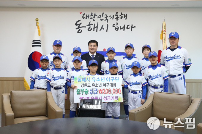 | 강원 동해시 유소년야구단이 2019희망나눔 캠페인에 성금을 기탁했다.[사진=동해시청] |