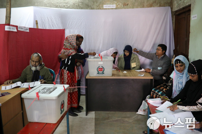 | [다카 로이터=뉴스핌] 이홍규 기자 = 30일(현지시간) 방글라데시에서 총선이 실시된 가운데 한 여성 유권자가 수도 다카의 투표소에서 투표함에 투표용지를 넣고 있다. 2018.12.30. |