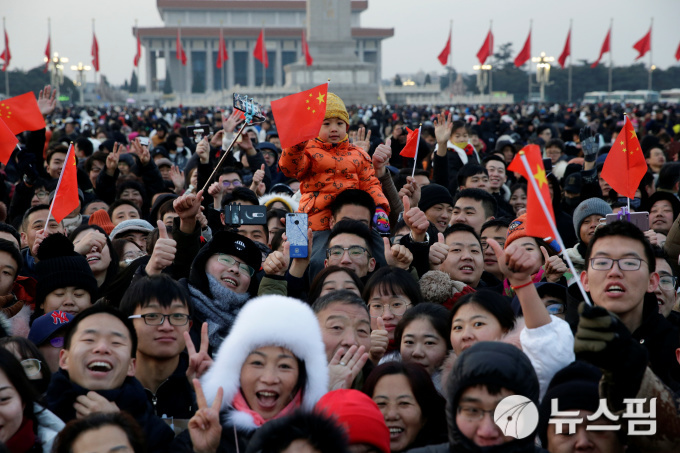 | [베이징 로이터=뉴스핌] 정윤영 인턴기자 = 1일(현지시각) 중국 베이징(北京) 천안문(天安門)광장에서 오성홍기(五星紅旗) 게양식을 구경하고자 시민들이 모여 있다. 2019.01.01. |