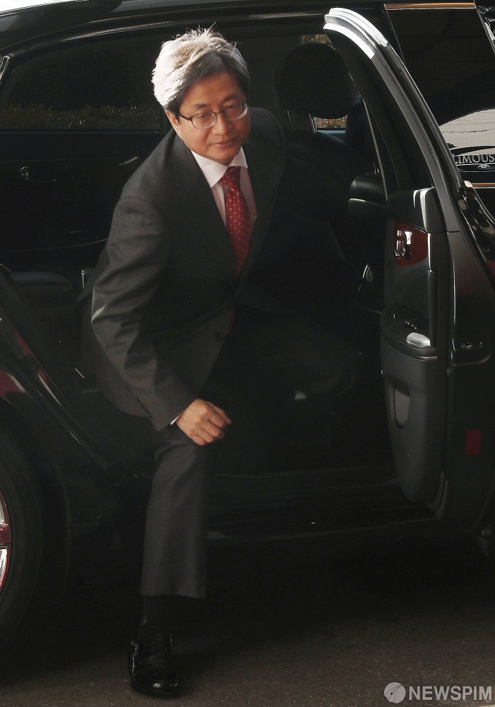 [사진] 굳은 표정 차에서 내리는 김명수 대법원장