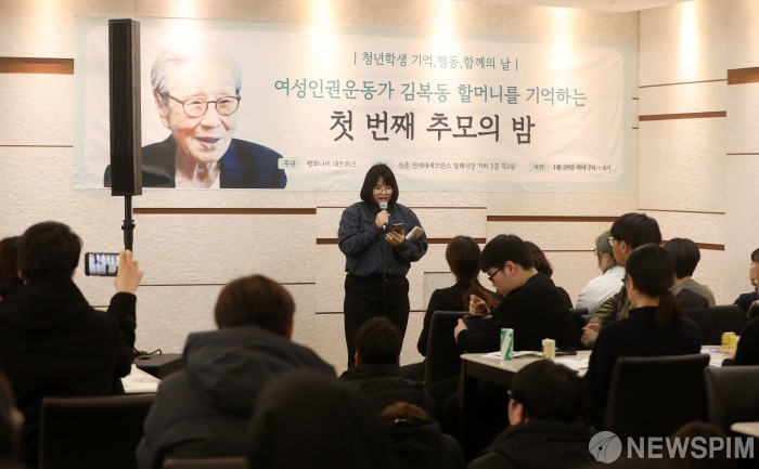 [서울=뉴스핌] 정일구 기자 = 29일 오후 서울 서대문구 세브란스 병원 장례식장에 마련된 일본군 '위안부' 피해자 고 김복동 할머니 빈소에서 평화나비 네트워크 주관으로 추모제가 진행되고 있다. 2019.01.29 mironj19@newspim.com