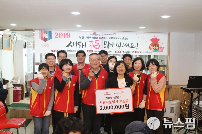 [부산=뉴스핌] 남경문 기자 = 부산지방우정청은 31일 설명절을 맞아 월드비전 연제종합사회복지관에서 저소득가정 및 홀로어르신 등 130여명에게 점심을 제공하는 무료급식 봉사활동을 펼쳤다.