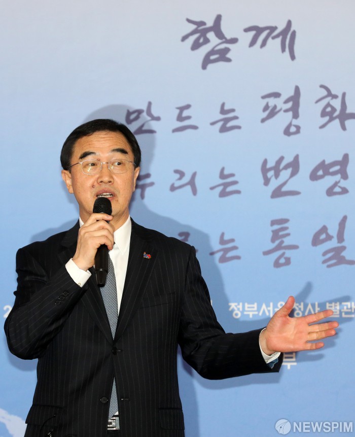 | [서울=뉴스핌] 정일구 기자 = 조명균 통일부장관이 4일 오전 서울 종로구 정부서울청사 별관에서 열린 '통일부 창설 50주년 기념행사'에서 인사말을 하고 있다. 2019.03.04 mironj19@newspim.com |