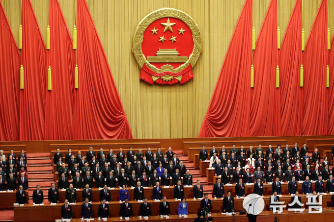 [사진] 中 전인대 개막식서 국가 제창하는 당국자들