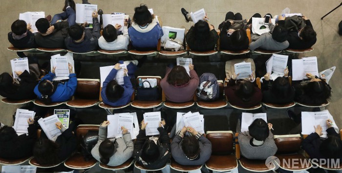 [서울=뉴스핌] 윤창빈 기자 = 9일 오후 서울 강남구 진선여자고등학교 회당기념관에서 열린 ‘종로학원 2020학년도 대입설명회‘에서 참석자들이 자료를 보면서 강연자의 말을 경청하고 있다. 2019.03.09 pangbin@newspim.com