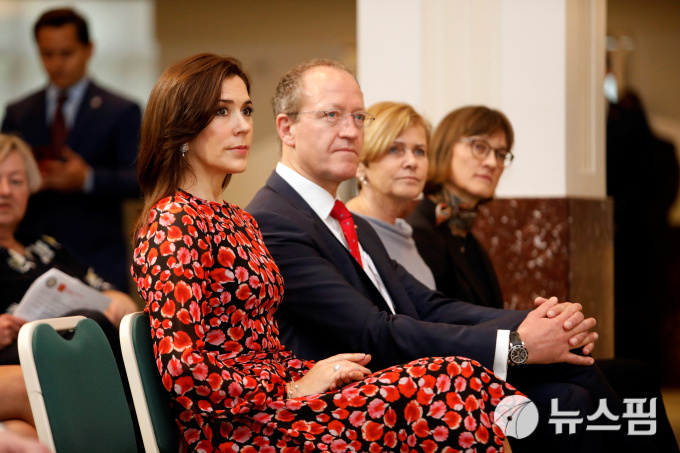 | [휴스턴 로이터=뉴스핌] 남혜경 인턴기자 = 12일(현지시간) 미국 텍사스주 휴스턴에 위치한 시청 청사에서 열린 홍수조절 브리핑에 참석한 덴마크의 메리 왕세자비(좌)가 헨릭 브람슨 한 주미 덴마크 대사 대행 옆에 앉아있다. 2019.03.12. |