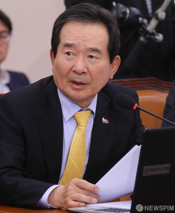 [서울=뉴스핌] 최상수 기자 = 정세균 더불어민주당 의원이 26일 오후 서울 여의도 국회에서 열린 박양우 문화체육관광부 장관 후보자 인사청문회에서 발언하고 있다. 2019.03.26 kilroy023@newspim.com