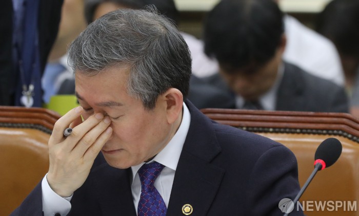 [서울=뉴스핌] 최상수 기자 = 정운현 국무총리비서실장이 26일 오후 서울 여의도 국회에서 열린 정무위원회 전체회의에서 눈을 부비고 있다. 2019.03.26 kilroy023@newspim.com