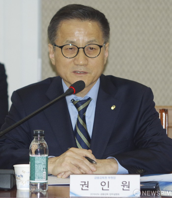 [서울=뉴스핌] 백인혁 인턴기자 = 권인원 금융감독원 부원장이 29일 오후 서울 영등포구 금융감독원에서 열린 2019 은행부문 금융감독 업무설명회에서 인사말을 하고 있다. 이날 금융감독원은 이번 설명회에서 논의된 업계의 의견과 건의 사항등에 대해 향후 감독·검사업무에 적극 반영할 계획이라고 밝혔다. 2019.03.29 dlsgur9757@newspim.com