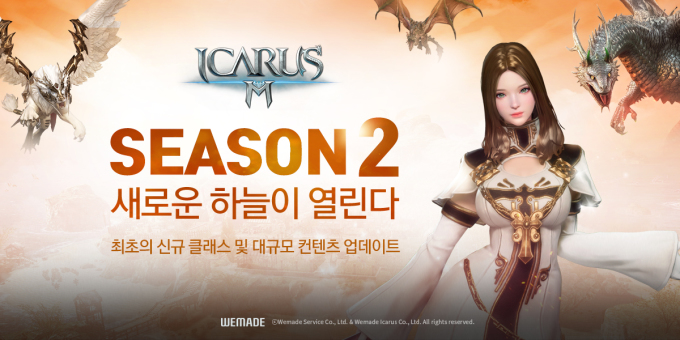 [서울=뉴스핌] 조정한 기자 = 모바일 다중접속역할수행게임(MMORPG) '이카루스M' 시즌2의 사전예약이 2일 시작됐다. '이카루스M' 시즌2는 위메이드이카루스(대표 장현국)가 개발하고 위메이드서비스(대표 송모헌)에서 퍼블리싱한다.