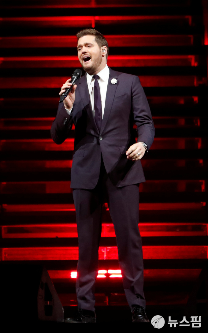 | [로스앤젤레스 로이터=뉴스핌] 김세원 기자 = 미국 캘리포니아주(州) 로스앤젤레스에 위치한 스테이플스 센터에서 캐나다 출신 가수 마이클 부블레가 공연하고 있다. 2019.04.02. |