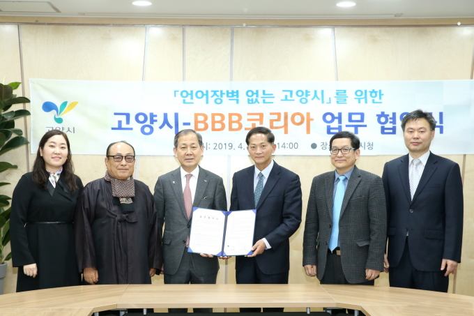 [고양=뉴스핌] 양상현 기자 = 경기 고양시는 최근 (사)BBB코리아와 언어장벽 없는 고양시 만들기 공동사업의 일환으로 외국어 통역서비스 업무협약(MOU)을 체결했다고 17일 밝혔다.