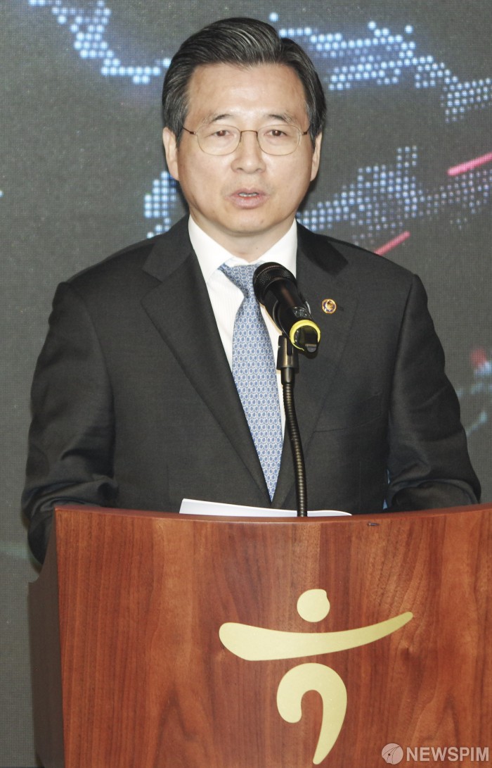[서울=뉴스핌] 백인혁 인턴기자 = 김용범 금융위원회 부위원장이 18일 오전 서울 중구 KEB하나은행 본점에서 열린 '1Q 애자일 랩(Agile Lab) 8기 출범식에서 축사를 하고 있다. 2019.04.18 dlsgur9757@newspim.com