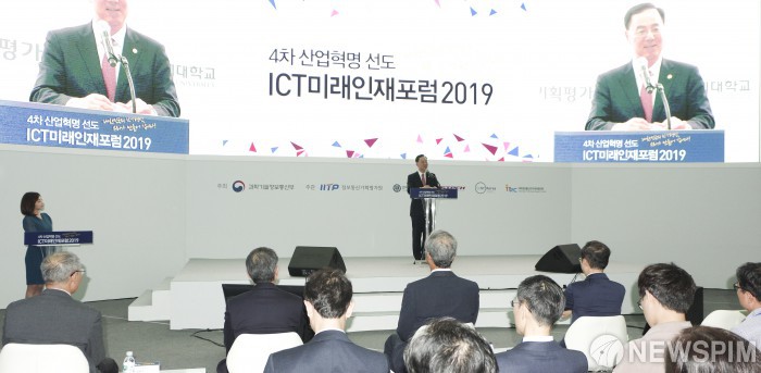 [서울=뉴스핌] 백인혁 인턴기자 = 민원기 과학기술정보통신부 제 2차관이 24일 오후 서울 강남구 코엑스에서 열린 2019 ICT 미래인재포럼 개회식에서 환영사를 하고 있다. 2019.04.24 dlsgur9757@newspim.com