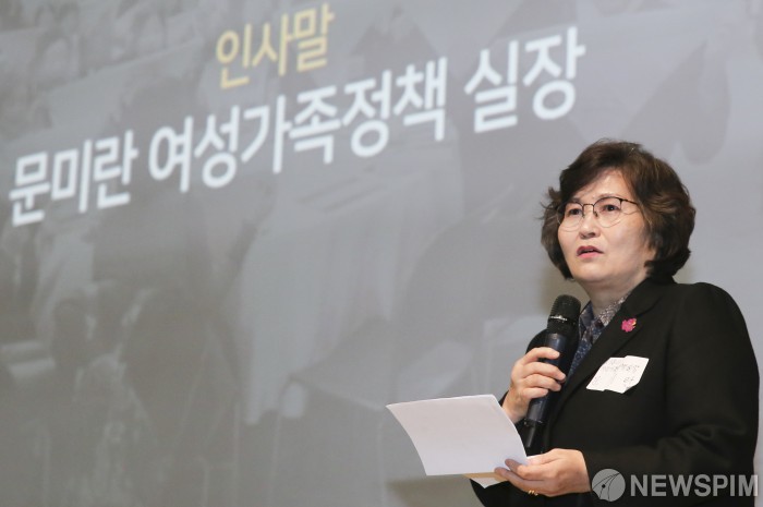 [서울=뉴스핌] 이한결 인턴기자 = 문미란 서울시 여성가족정책 실장이 26일 오전 서울 중구 서울특별시청에서 진행된 2019 젠더거버넌스 선포식에서 인사말을 하고 있다. 2019.04.26 alwaysame@newspim.com
