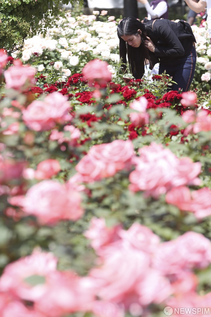 [서울=뉴스핌] 이형석 기자 = 26일 오전 서울 송파구 올림픽공원 장미광장에서 시민들이 활짝 핀 장미꽃을 스마트폰에 담고 있다. 2019.05.26 leehs@newspim.com