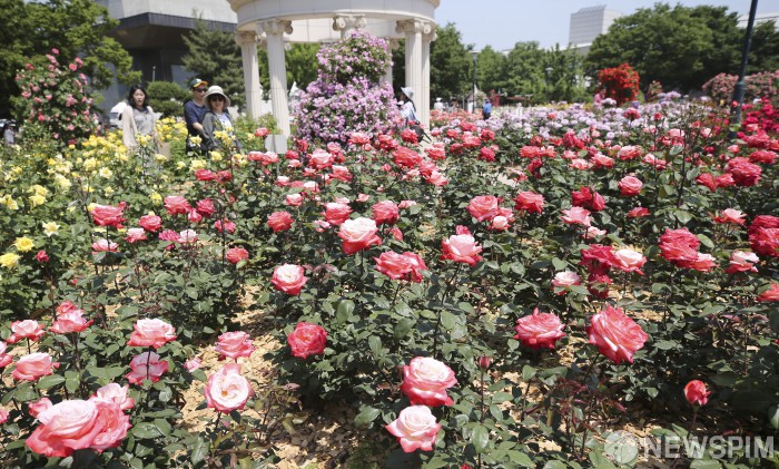 [서울=뉴스핌] 이형석 기자 = 26일 오전 서울 송파구 올림픽공원 장미광장에서 시민들이 활짝 핀 장미꽃을 즐기고 있다. 2019.05.26 leehs@newspim.com