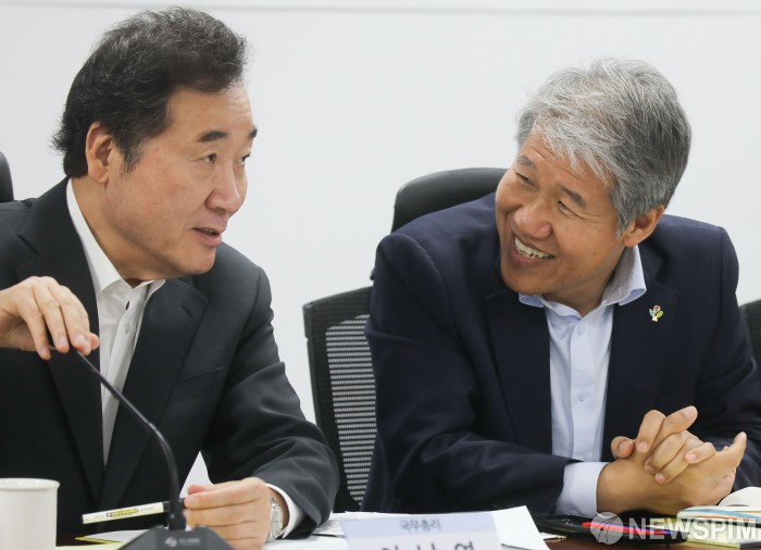[서울=뉴스핌] 최상수 기자 = 이낙연 국무총리, 김수현 청와대 정책실장이 10일 오전 서울 여의도 국회의원회관에서 열린 확대고위당정협의회에서 대화를 나누고 있다. 2019.06.10 kilroy023@newspim.com