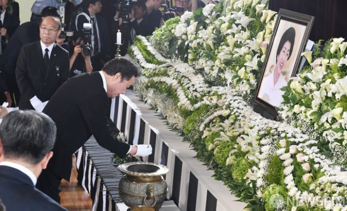 韩国前总统金大中夫人李姬镐追悼会14日上午9时30分在国立显忠院举行,韩国社会各界人士与2000余名民众到现场送李姬镐最后一程。