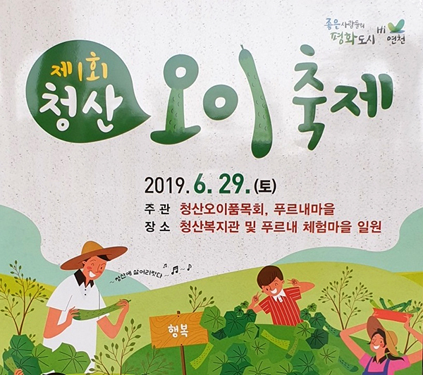 [연천=뉴스핌] 양상현 기자 = 경기 연천군은 청산오이품목회와 푸르내 마을 주최로 청산오이의 우수성을 널리 알리기 위한 ‘제1회 청산오이축제’가 오는 29일 청산복지관과 푸르내 마을 일대에서 개최된다고 21일 밝혔다.