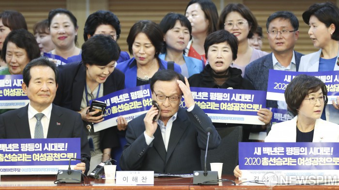 [서울=뉴스핌] 이형석 기자 = 이해찬 더불어민주당 대표가 24일 오후 서울 여의도 국회 의원회관에서 열린 2020총선승리를 위한 여성당당 선포식에서 땀을 닦고 있다. 2019.06.24 leehs@newspim.com