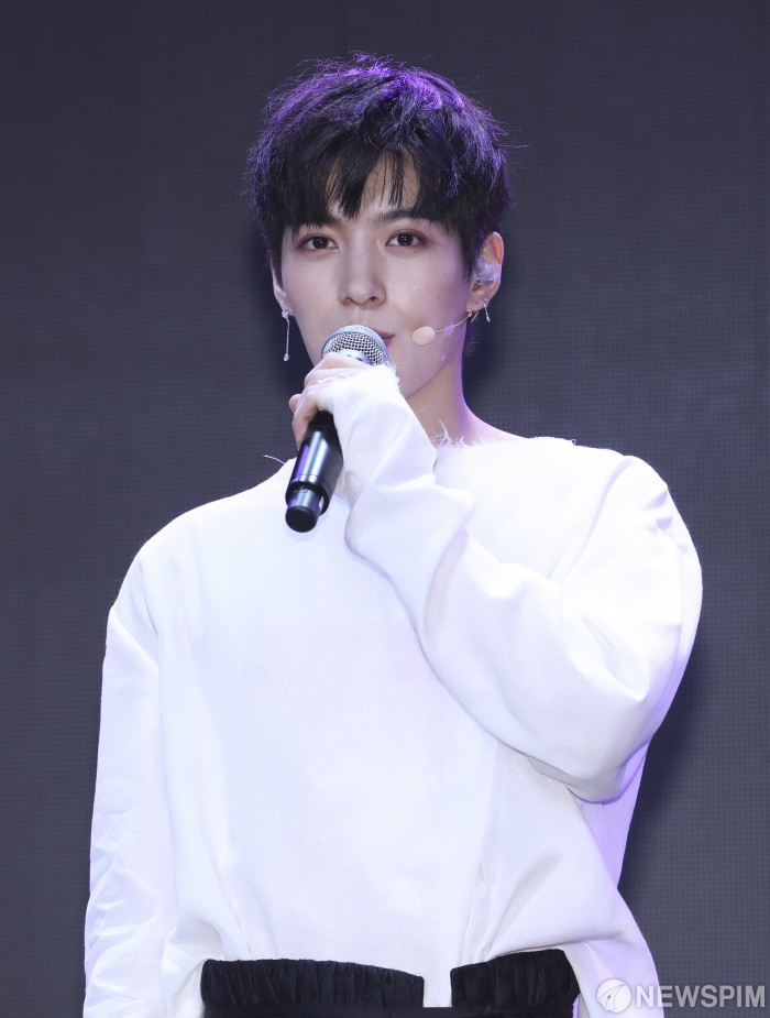 [서울=뉴스핌] 백인혁 기자 = 4인조 보이그룹 리미트리스(LIMITLESS)의 멤버 레이찬이 9일 오후 서울 마포구 무브홀에서 열린 '리미트리스(LIMITLESS)' 데뷔 쇼케이스에서 인사말을 하고 있다. 2019.07.09 dlsgur9757@newspim.com