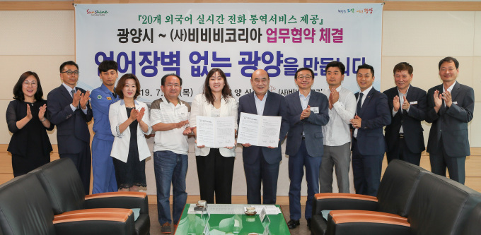 [광양=뉴스핌] 오정근 기자 = 광양시는 지난 11일 (사)비비비(BBB)코리아와 전남 최초로 ‘언어장벽 없는 광양 만들기’ 사업을 위해, 외국어 통역서비스 업무협약을 체결했다고 12일 전했다.