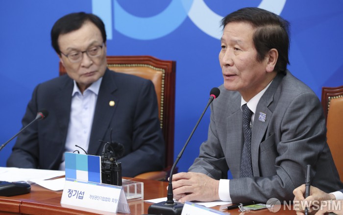 [서울=뉴스핌] 이형석 기자 = 정기섭 개성공단기업회장이 31일 오후 서울 여의도 국회에서 열린 남북경협기업 간담회에서 모두발언을 하고 있다. 2019.07.31 leehs@newspim.com