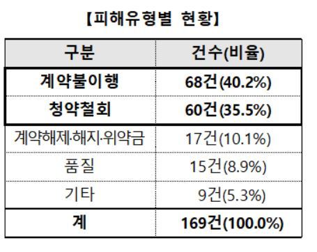 3년간 피해 사례 169건 접수…계약불이행 40.2%, 청약 철회 35.5%