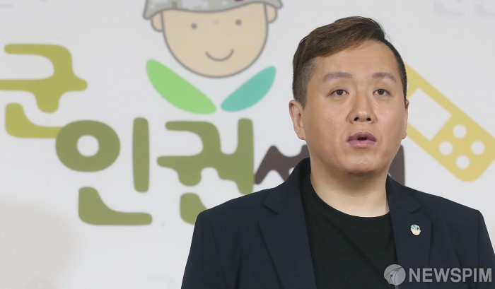 [서울=뉴스핌] 정일구 기자 = 임태훈 군인권센터 소장이 8일 오전 서울 마포구 군인권센터에서 육군 7군단 발생 인권침해 관련 상담제보 결과 기자회견을 하고 있다. 2019.08.08 mironj19@newspim.com