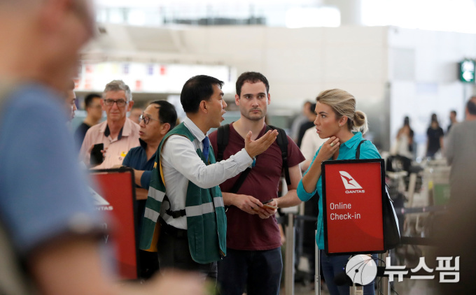 | [홍콩 로이터=뉴스핌] 김선미 기자 = 홍콩 시위대가 홍콩 국제공항을 점거해 여객기 운항이 이틀째 중단된 가운데, 외국인들이 공항 직원들과 얘기하고 있다. 2019.08.13 |