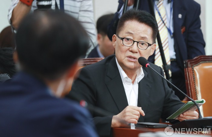 [서울=뉴스핌] 이형석 기자 = 박지원 의원이 6일 오후 서울 여의도 국회에서 열린 법제사법위원회 조국 법무부 장관 후보자 인사청문회에서 질의를 하고 있다. 2019.09.06 leehs@newspim.com