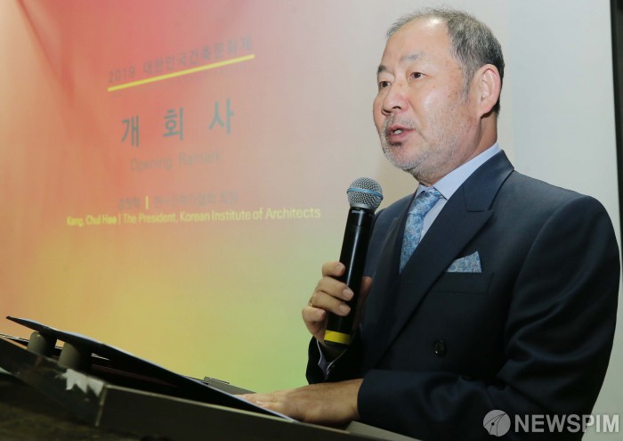 [서울=뉴스핌] 윤창빈 기자 = 강철희 한국건축가협회 회장이 20일 오후 서울 중구 문화역서울 284에서 열린 2019 대한민국건축문화제에서 개회사를 하고 있다. 2019.09.20 pangbin@newspim.com