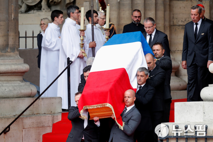 [파리 로이터=뉴스핌] 김선미 기자 = 자크 시라크 전 프랑스 대통령의 국장이 파리 시내 생 쉴피스 성당에서 엄수됐다. 2019.09.30