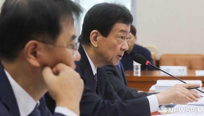 [서울=뉴스핌] 최상수 기자 = 진영 행정안전부 장관이 2일 오전 서울 여의도 국회 행정안전위원회에서 열린 행정안전부에 대한 국정감사에서 의원들의 질의에 답변하고 있다. 2019.10.02 kilroy023@newspim.com