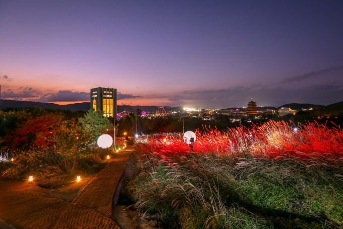 관람객이 직접 북을 쳐 악마를 물리치는 '야샤와의 전투' 코스를 지나면 경주의 야경이 한 눈에 내려다보이는 억새풀밭에 도달한다.