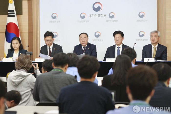 [서울=뉴스핌] 이형석 기자 = 홍남기 부총리 겸 기획재정부 장관이 25일 오전 서울 종로구 정부서울청사 별관에서 WTO 개도국 논의 대응방향을 발표 하고 있다. 2019.10.25 leehs@newspim.com