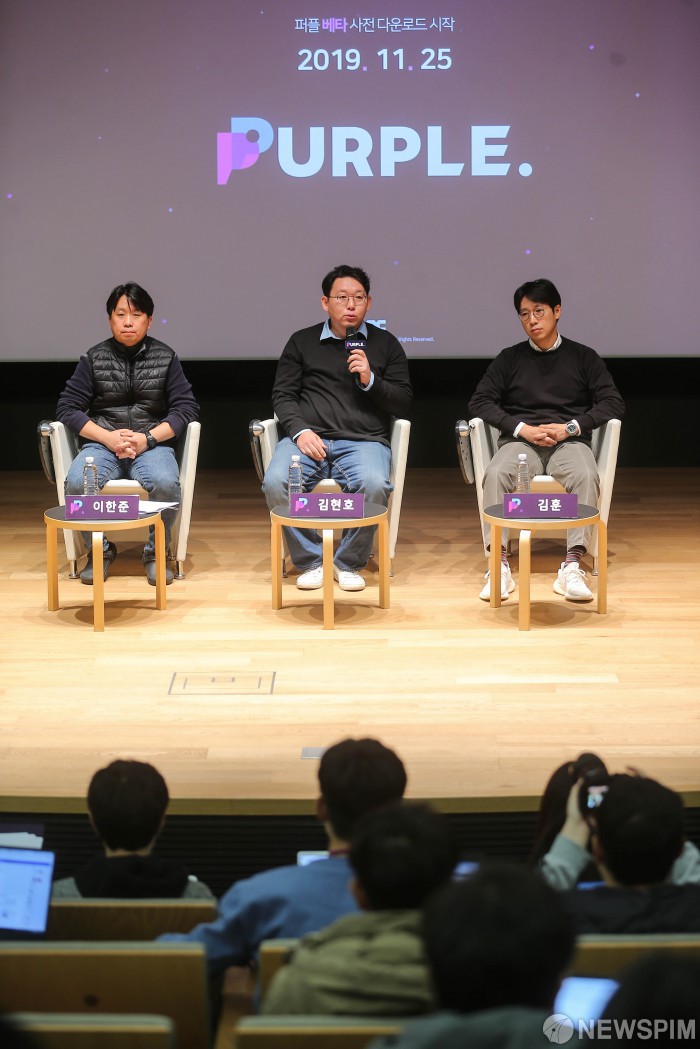 [성남=뉴스핌] 윤창빈 기자 = 김현호 NC소프트 플랫폼사업센터장이 20일 오전 경기 성남시 NC소프트 R&D센터에서 열린 차세대 게이밍 플랫폼 '퍼플' 미디어 간담회에서 취재진의 질문에 답변하고 있다. 2019.11.20 pangbin@newspim.com