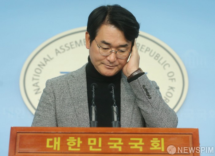 [서울=뉴스핌] 윤창빈 기자 = 박용진 더불어민주당 의원이 1일 오전 서울 여의도 국회의사당에서 유치원 3법 등 어린이 관련 민생법안 우선처리를 위한 원포인트 본회의를 요구하는 기자회견 도중 머리를 만지고 있다. 2019.12.01 pangbin@newspim.com