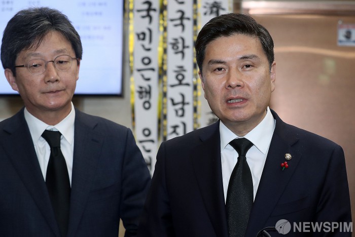 [수원=뉴스핌] 정일구 기자 = 지상욱 바른미래당 의원이 11일 오후 경기 수원시 아주대병원 장례식장에 마련된 고(故) 김우중 전 대우그룹 회장의 빈소를 찾아 조문을 마친 뒤 취재진 질문에 답하고 있다. 2019.12.11 mironj19@newspim.com
