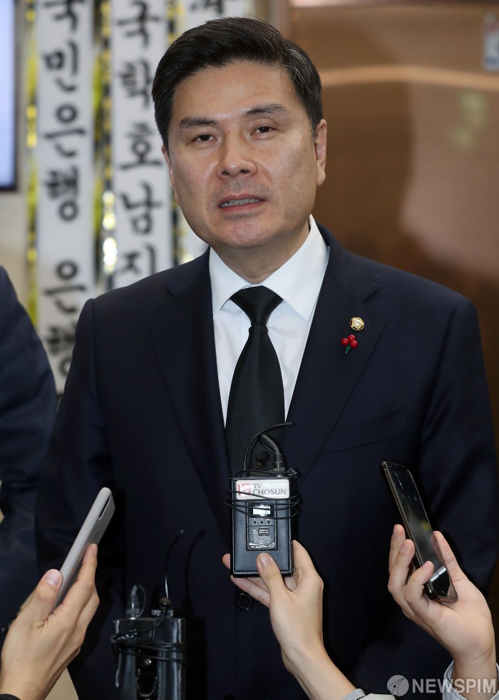 [수원=뉴스핌] 정일구 기자 = 지상욱 바른미래당 의원이 11일 오후 경기 수원시 아주대병원 장례식장에 마련된 고(故) 김우중 전 대우그룹 회장의 빈소를 찾아 조문을 마친 뒤 취재진 질문에 답하고 있다. 2019.12.11 mironj19@newspim.com