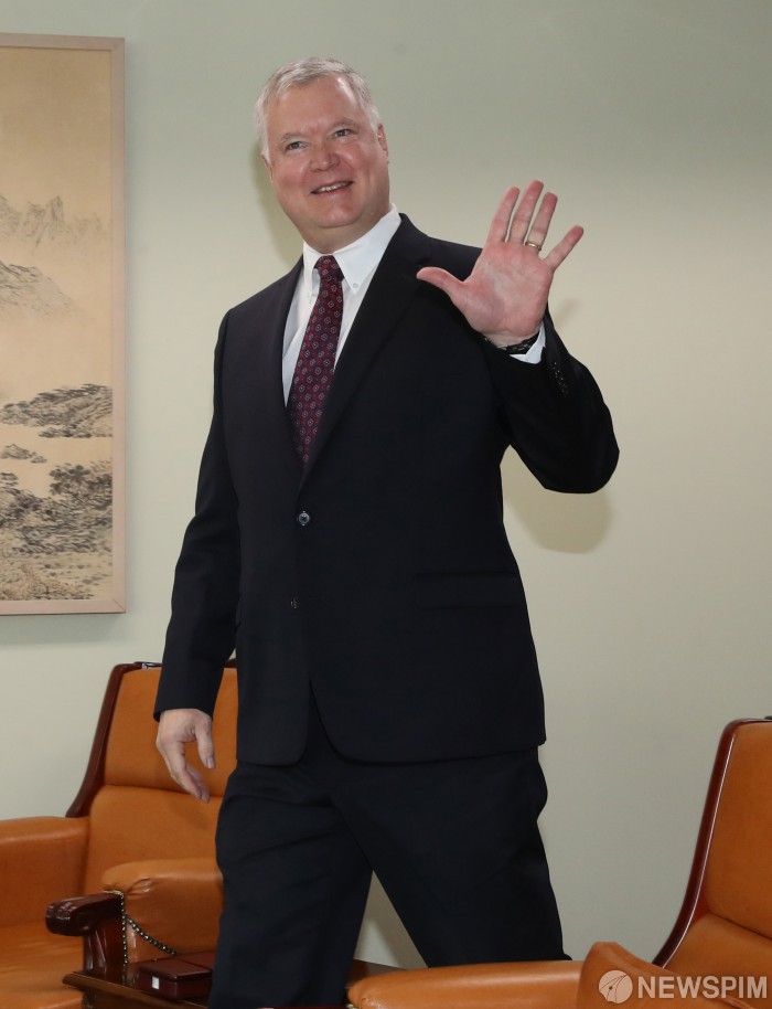 [서울=뉴스핌] 윤창빈 기자 = 스티븐 비건 미국 국무부 대북정책특별대표가 16일 오전 서울 종로구 외교부 청사에서 이도훈 외교부 한반도 평화교섭본부장과의 한미 북핵수석대표협의에 참석하고 있다. 2019.12.16 pangbin@newspim.com