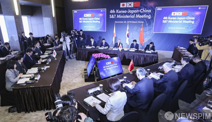 [서울=뉴스핌] 이한결 기자 = 최기영 과학기술정보통신부 장관이 26일 오전 서울 중구 더 플라자 호텔에서 열린 '제4차 한·중·일 과학기술장관회의'에서 인사말을 하고 있다. 2019.12.26 alwaysame@newspim.com