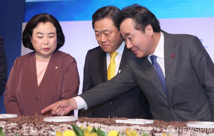 [서울=뉴스핌] 백인혁 기자 = 이낙연 국무총리(오른쪽부터), 유주현 대한건설단체총연합회 회장, 박순자 국회 국토교통위원회 회장이 3일 오후 서울 중구 롯데호텔에서 열린 2020 건설인 신년인사회에서 대화를 나누고 있다. 2020.01.03 dlsgur9757@newspim.com