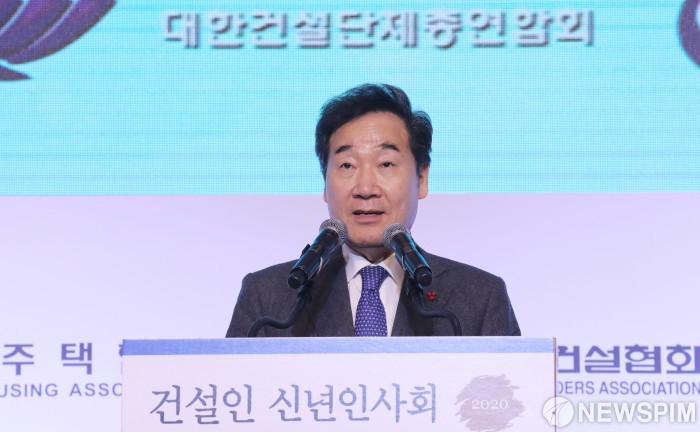 [서울=뉴스핌] 백인혁 기자 = 이낙연 국무총리가 3일 오후 서울 중구 롯데호텔에서 열린 2020 건설인 신년인사회에서 기념사를 하고 있다. 2020.01.03 dlsgur9757@newspim.com